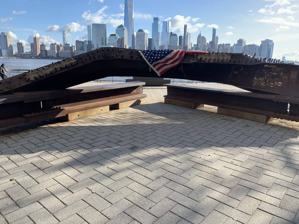 Years later, standing on the riverbank looking back at the skyline, I saw a bent steel beam draped with an American flag. It felt perfectly placed, a symbol of resilience and remembrance. Against the backdrop of Manhattan, the world seemed to pause again, still, reflective, and reverent.