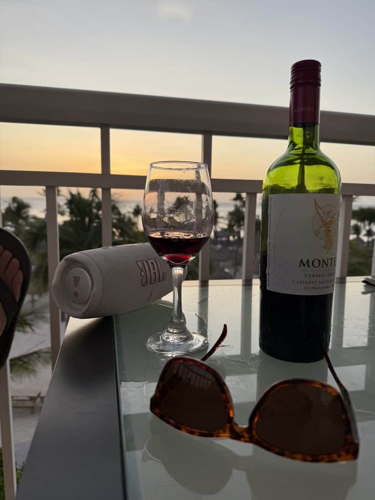There’s nothing quite like pairing a glass of wine with an Aruban sunset. Sitting on the balcony, sandals kicked off, music playing through a portable speaker, and palm trees silhouetted against the fading sky—it’s a reminder that sometimes the simplest pairings are the best.
